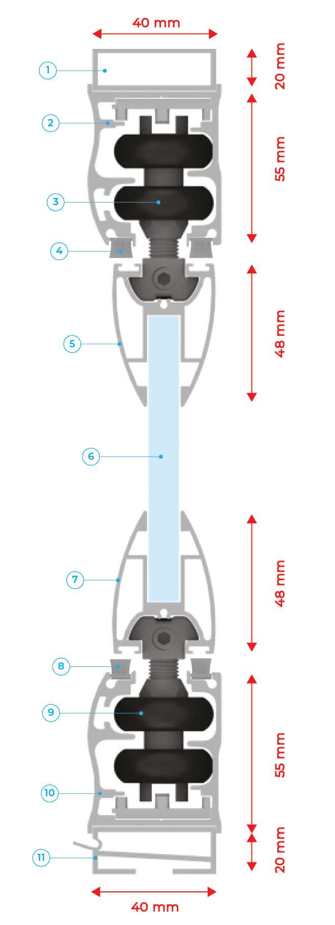 - Upper profile, height 55 mm