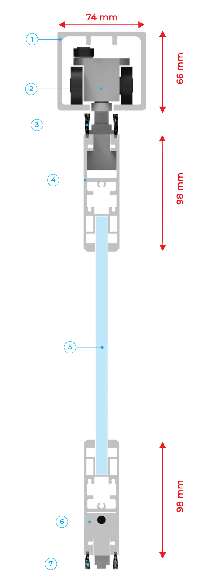 Sistemul nu necesită montajul unui profil ( prag ) inferior, iar foile de sticlă glisează individual, astfel că pot fi blocate sau deblocate fără să depindă de restul ansamblului.