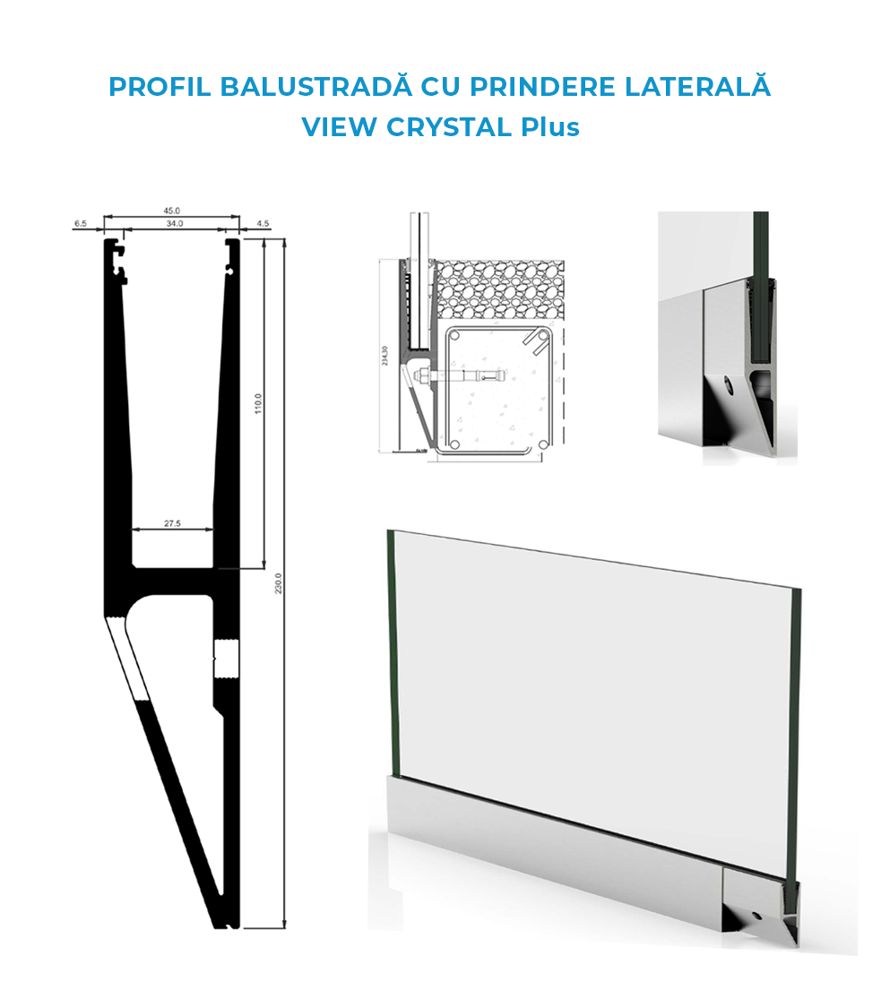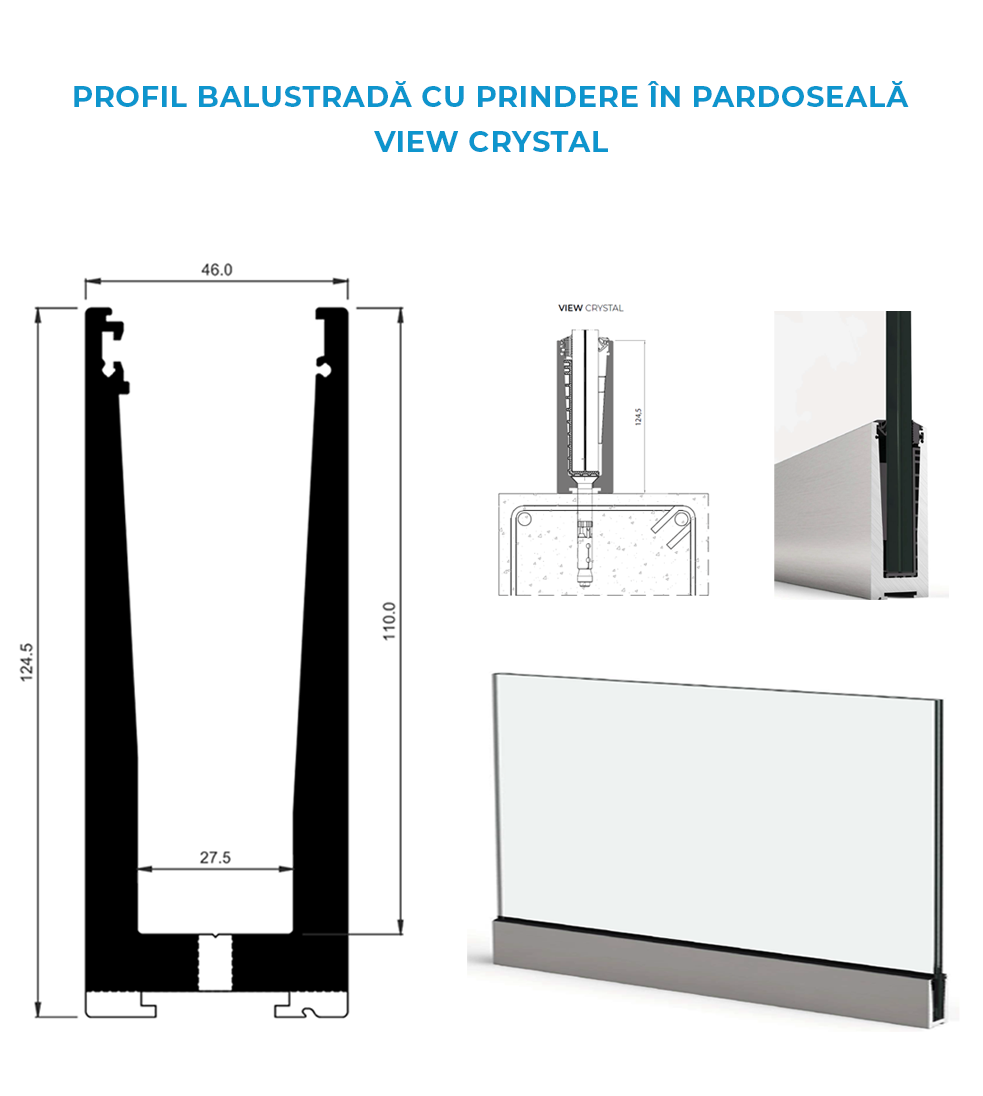 Tip 2: Balustradă din sticlă cu prindere în pardoseală View Cristal GlassPro