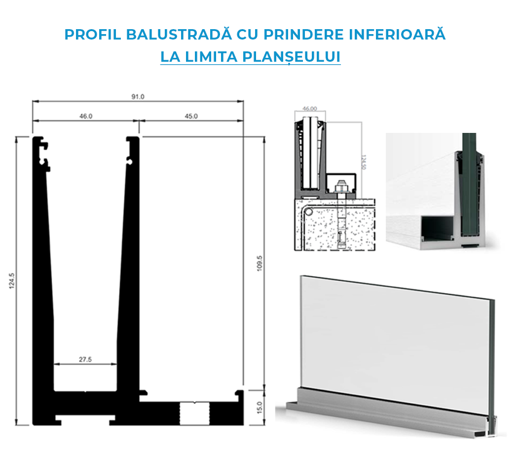 Flexibilitate și stil pentru orice proiect: Alege dintre sistemul nostru de balustrade din sticlă cu prindere inferioară sau cu profil pe contur și montanți verticali!