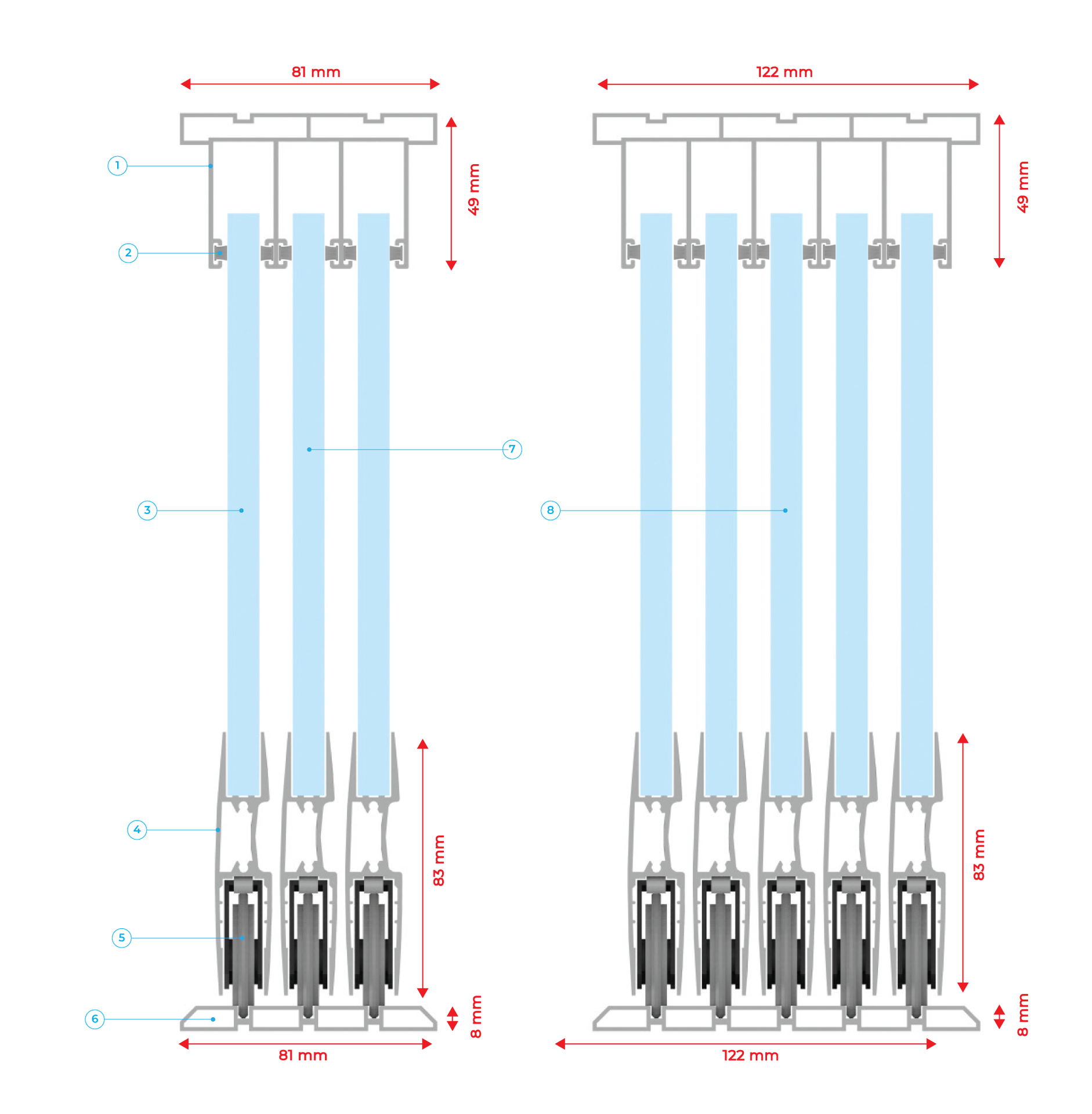 4. Baghetă fixare sticlă, înălțime h = 83 mm