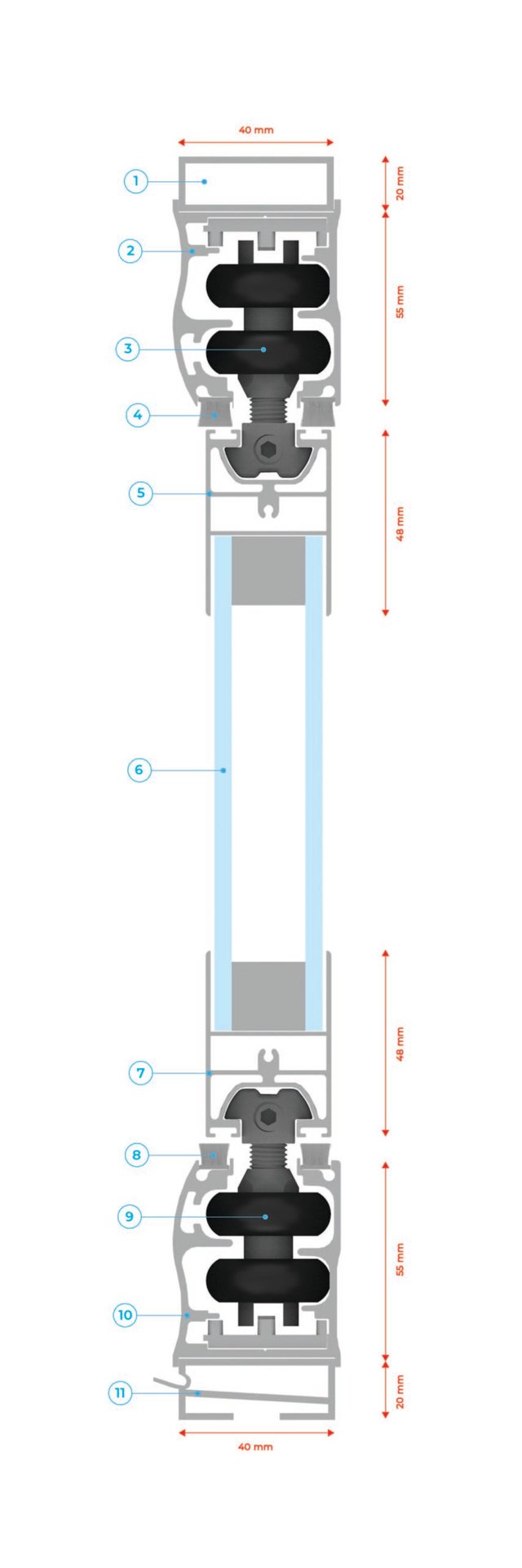- Baghetă fixare sticlă, înălțime: 48 mm
